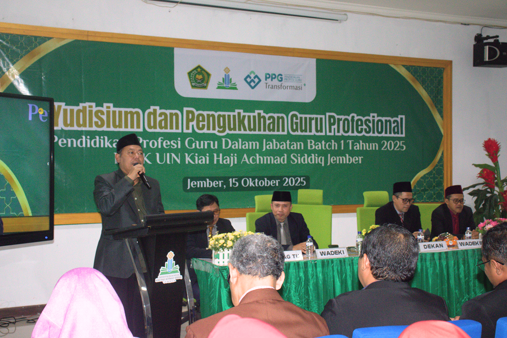 Program Studi Pendidikan Profesi Guru (PPG) Universitas Islam Negeri Kiai Haji Achmad Siddiq (UIN KHAS) Jember kembali mencetak ribuan guru profesional melalui kegiatan Yudisium dan Pengukuhan Guru Profesional PPG Transformasi+ Batch 1 Tahun 2025, yang dilaksanakan pada R...