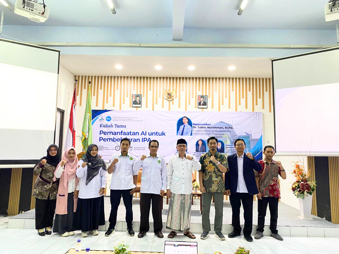 Selasa, 14 Oktober 2025, Aula Perpustakaan UIN Kiai Haji Achmad Siddiq (KHAS) Jember menjadi pusat antusiasme akademik dengan terselenggaranya Kuliah Tamu bertema “Pemanfaatan AI untuk Pembelajaran IPA.” Kegiatan ini diikuti oleh seki...